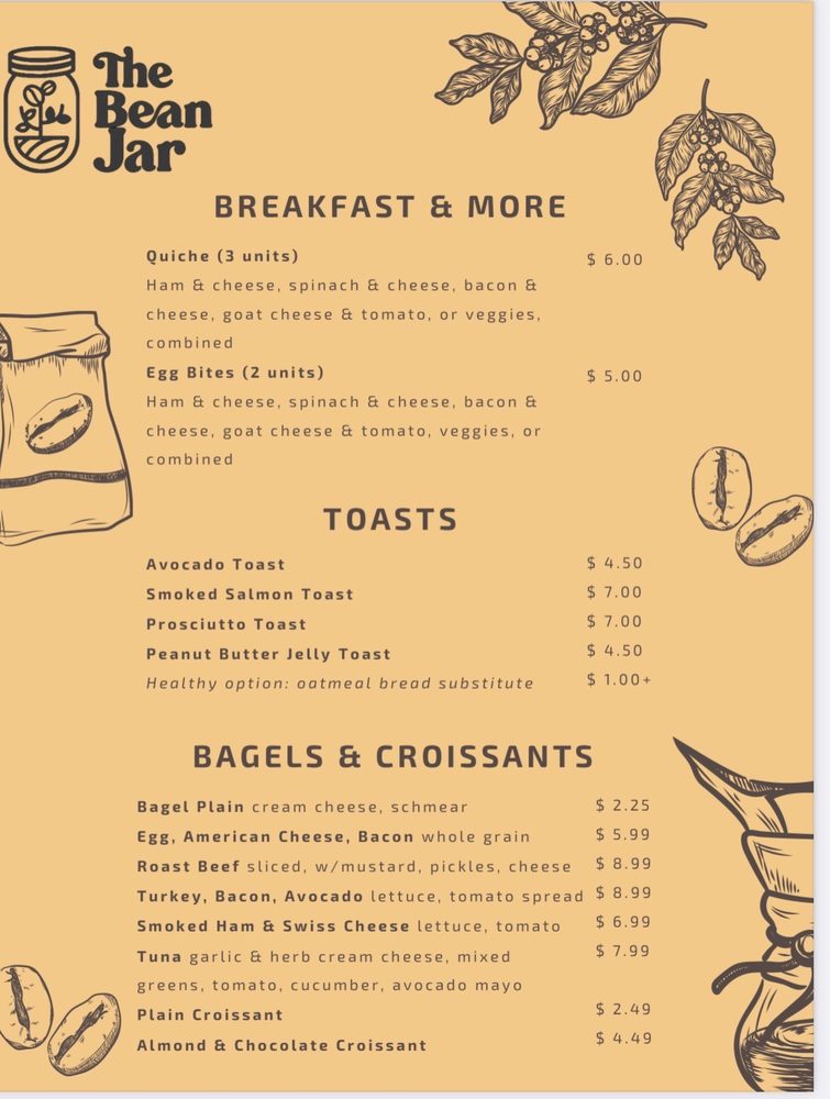 With features like free Wi-Fi, outdoor seating, and a cozy atmosphere, The Bean Jar is ideal for both quick coffee runs and leisurely brunches. Whether dining in or taking out, this spot is sure to become a beloved destination.